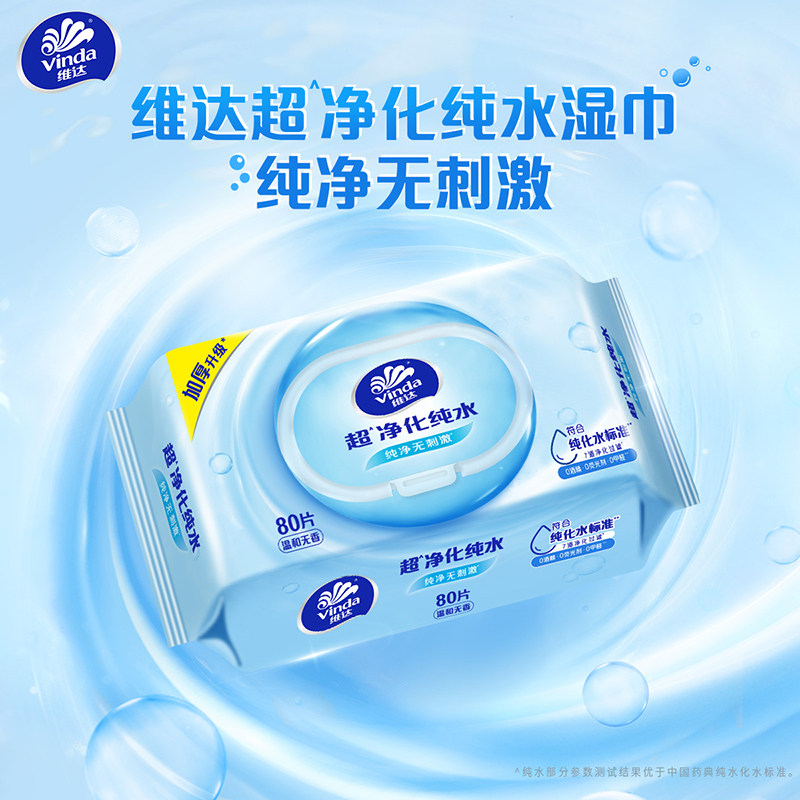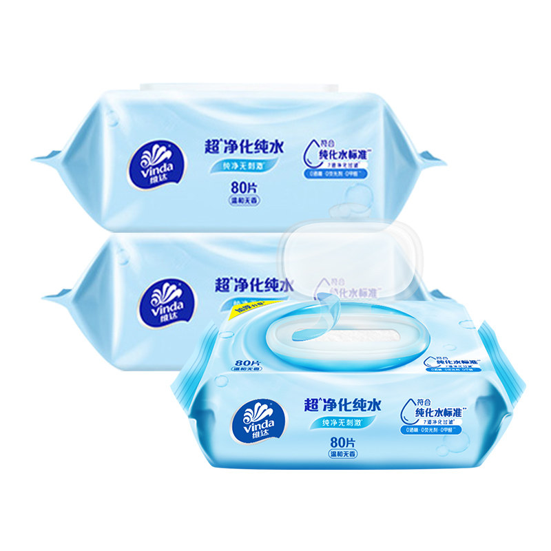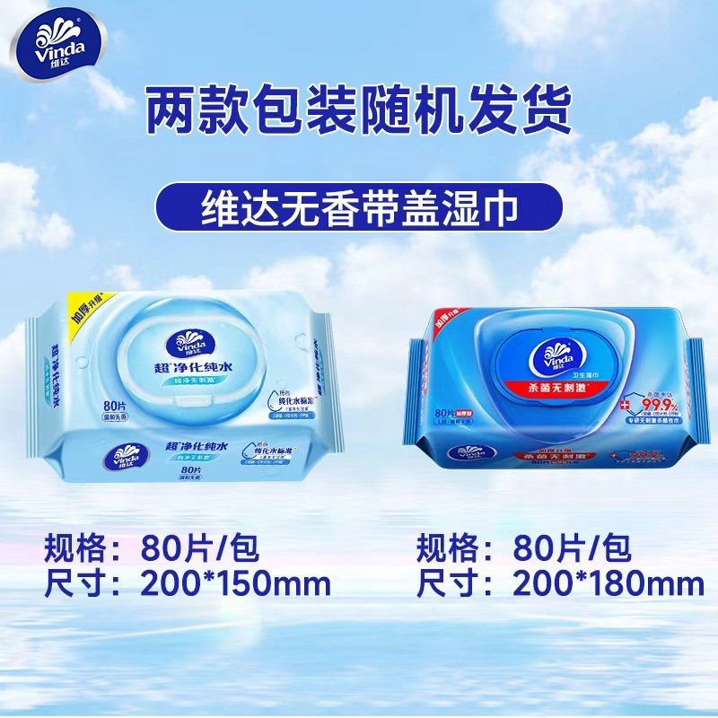 维达纯水湿巾纸湿巾80片大包装 婴儿湿纸巾BV 整箱男女士家庭实惠装