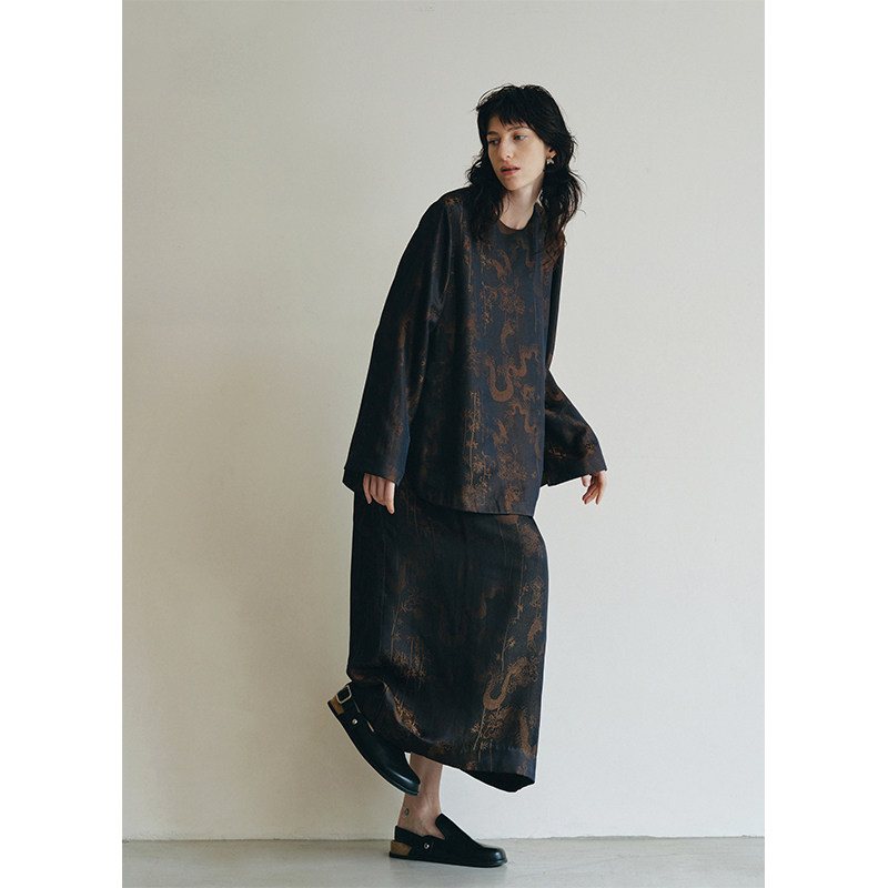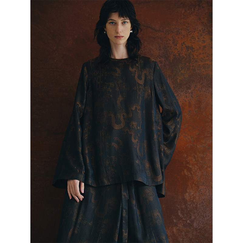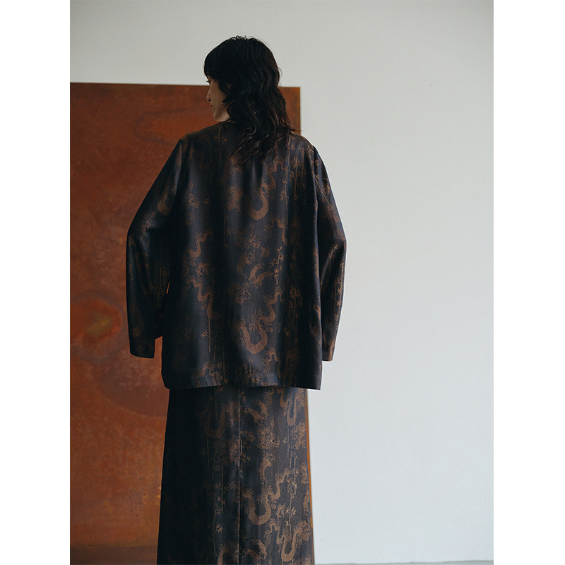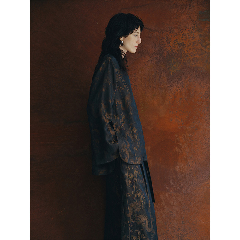 侧开叉上衣 色织暗花小圆领喇叭袖 MeeLeeMeeLab 原创绅士新中式