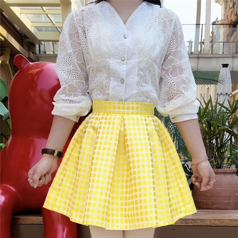 气质镂空设计上衣高腰显瘦遮肉半身裙 时尚 蓬蓬套裙女春秋韩版 新款