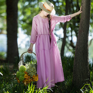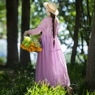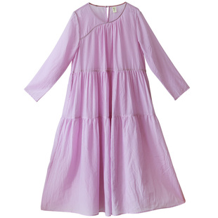 圆领偏襟拼接连衣裙宽松塔裙女新款 夏季 超仙气长裙 紫苑花 7折