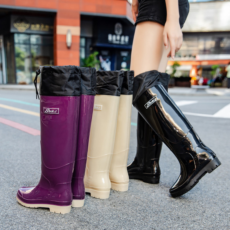外穿防水户外雨林徒步水靴 女雨靴加绒加厚底成人时尚 高筒雨鞋 水鞋