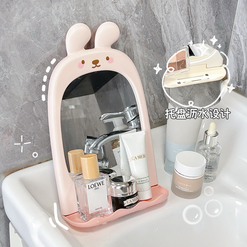 梳妆台智能led化妆镜带灯可爱卧室台式 镜子学生宿舍桌面ins梳妆镜