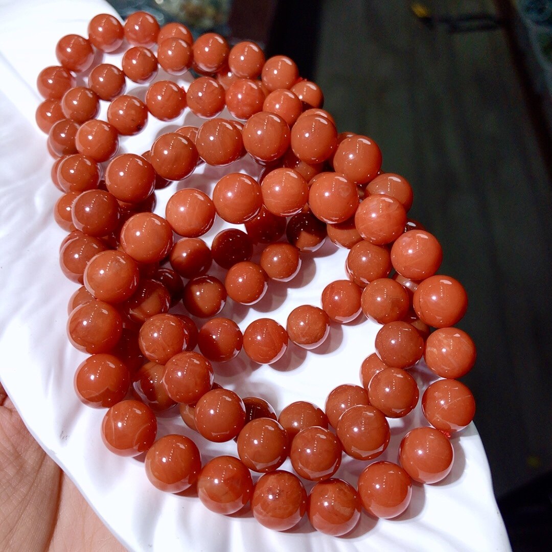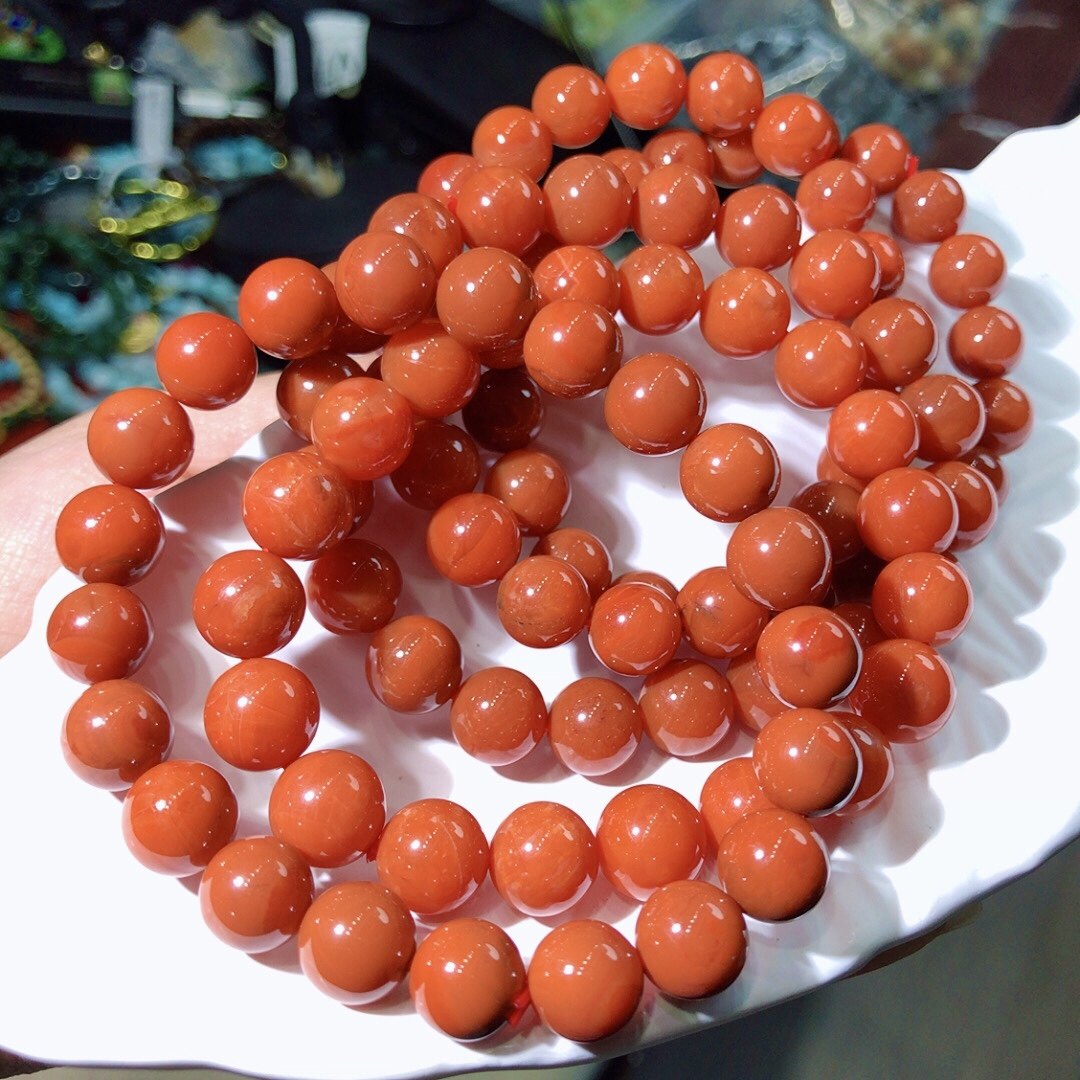 S922天然南红玛瑙手链柿子红满色满肉川料老料手链10mm手串男女款