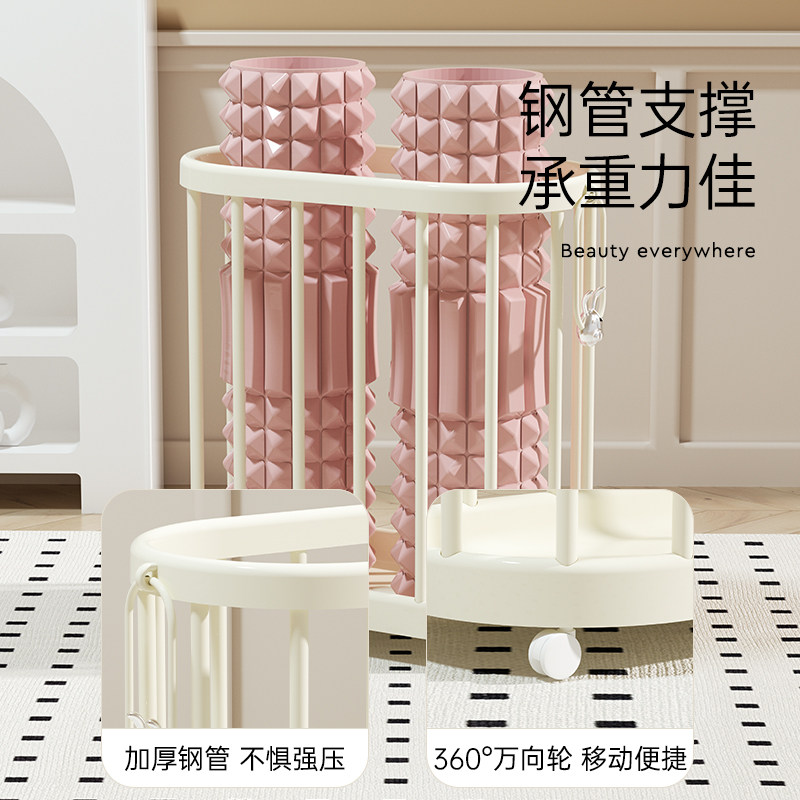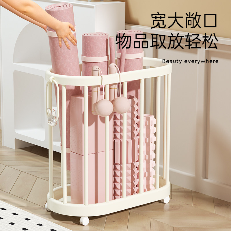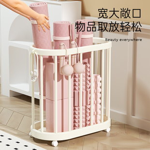 瑜伽垫收纳筐带轮家用健身运动器材球类收纳架放羽毛球夹缝置物架