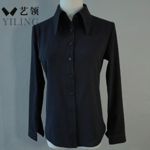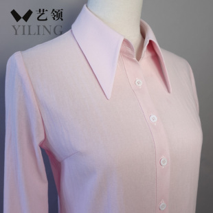 复古水洗肌理压纹纯棉通勤白领职场OL内搭外穿长袖 衣 大尖领女衬衫