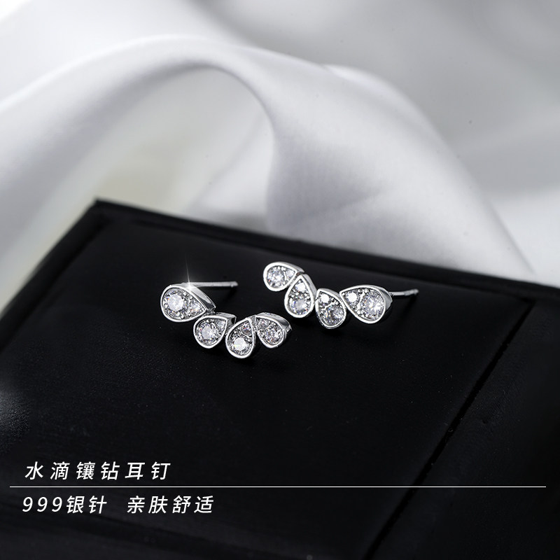 999银水滴镶钻耳钉女轻奢小众耳饰2024新款 Z小姐 欧阳娜娜同款