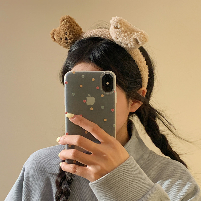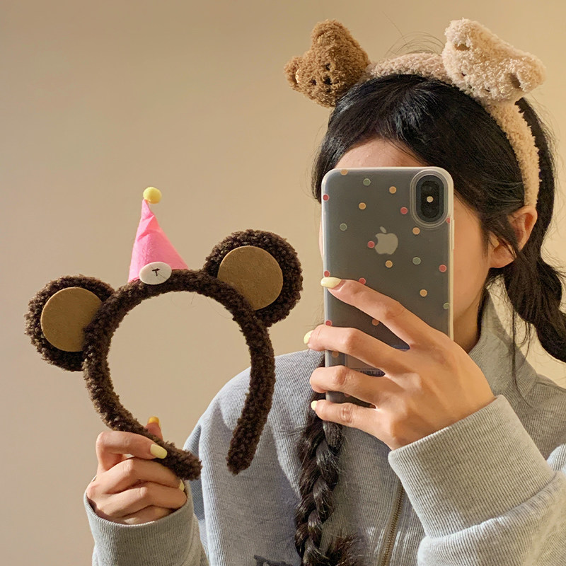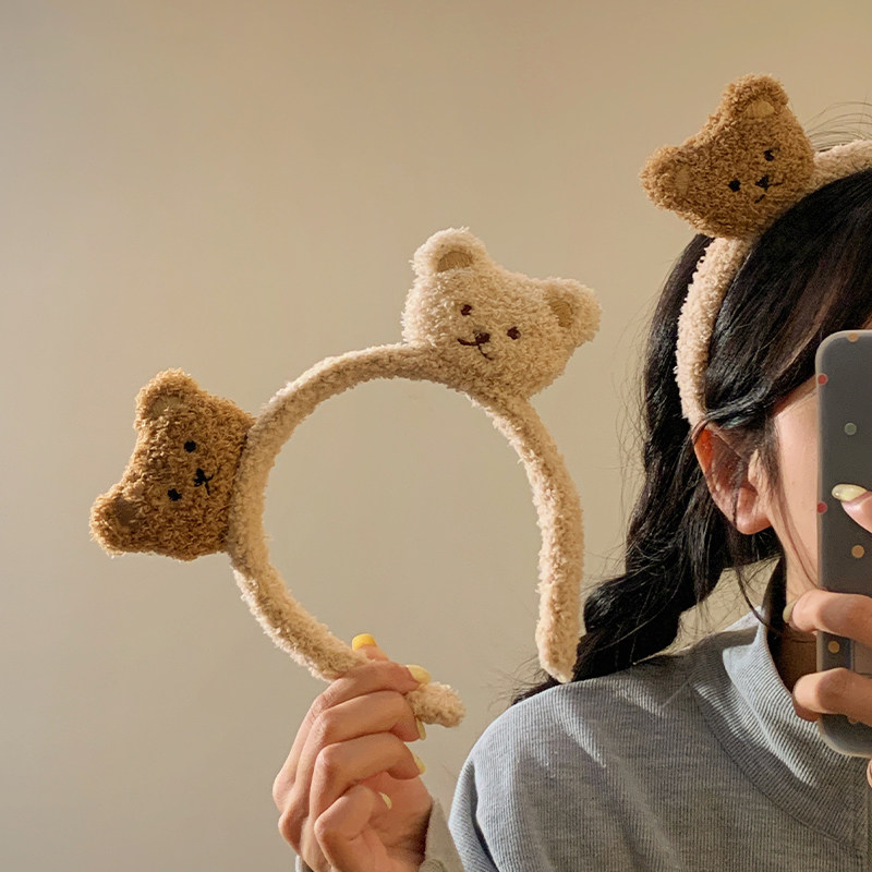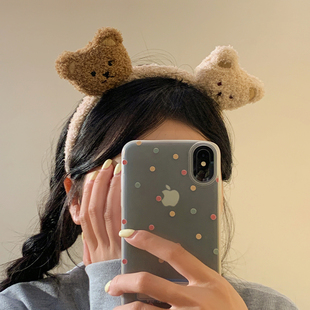 咖色小熊毛绒发箍女可爱洗脸敷面膜刘海固定压发卡通头箍发卡发饰
