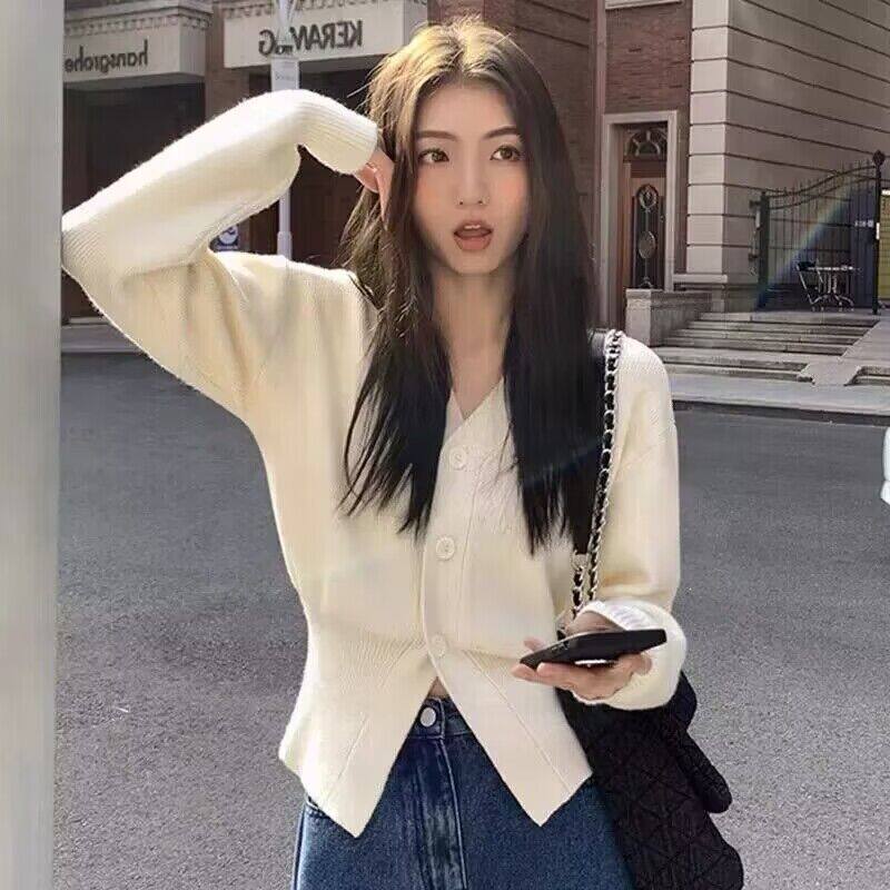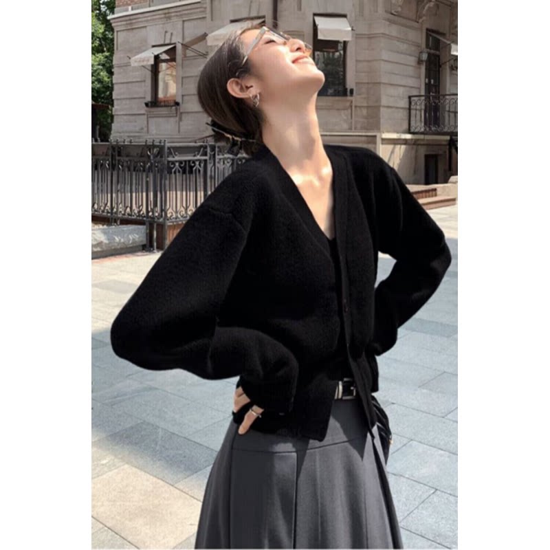 毛衣外套 收腰简约v领加厚短款 100%山羊绒针织开衫 女2025秋冬新款