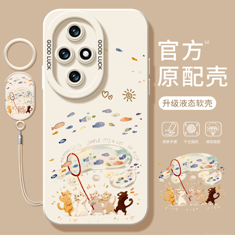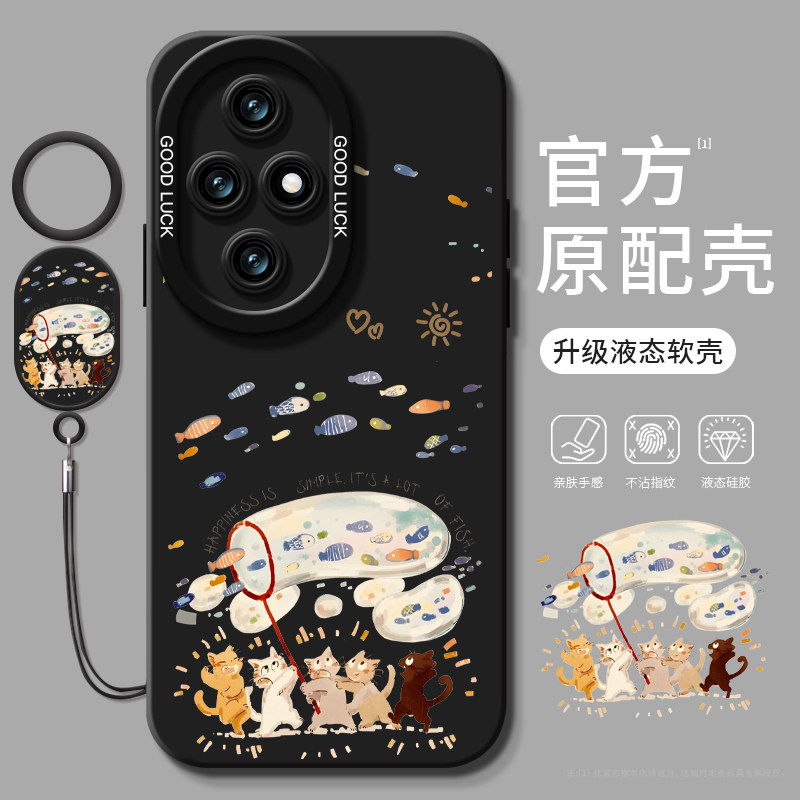 华为荣耀200手机壳100pro新款 x40全包外壳 猫咪捕鱼80se防摔软壳90GT可爱70液态硅胶60指环扣50荣耀x50i情侣款