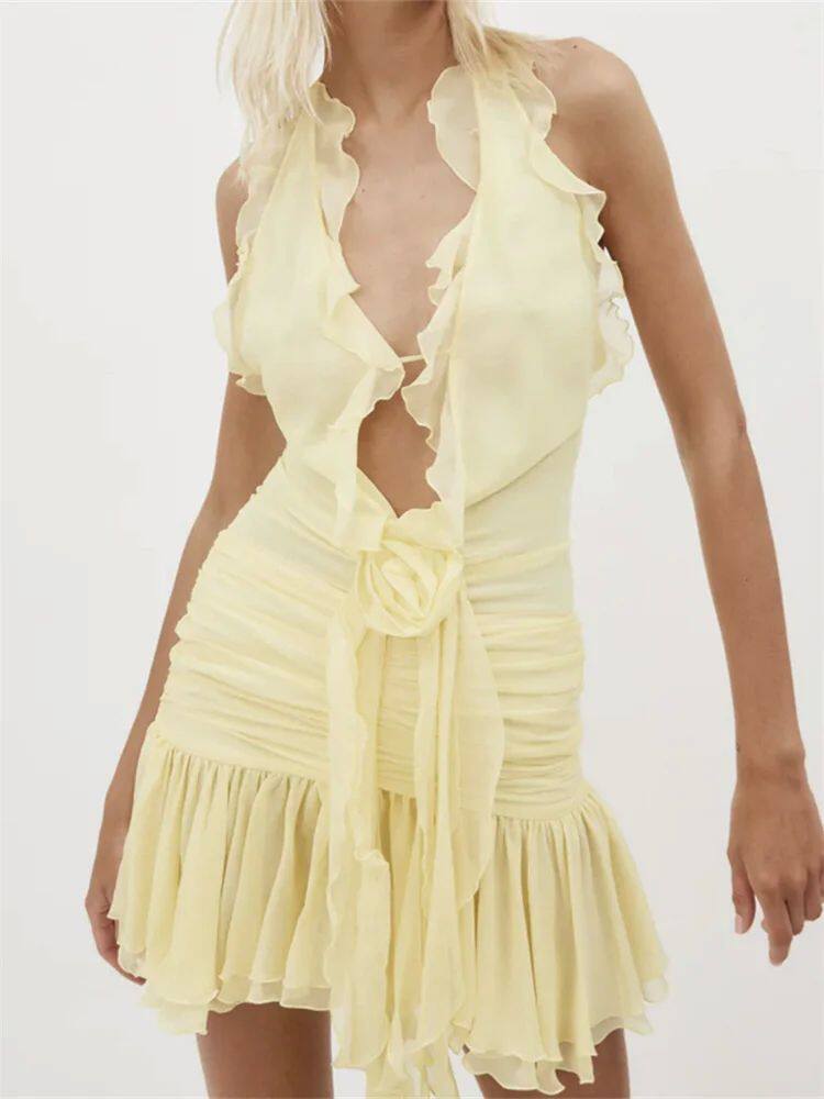 neck halter sleeveless Solid V领挂脖无袖 dress 连衣裙 color