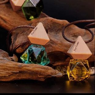 车载香水香薰吊坠汽车挂饰持久淡香精油车内挂件悬挂式 玻璃瓶木盖