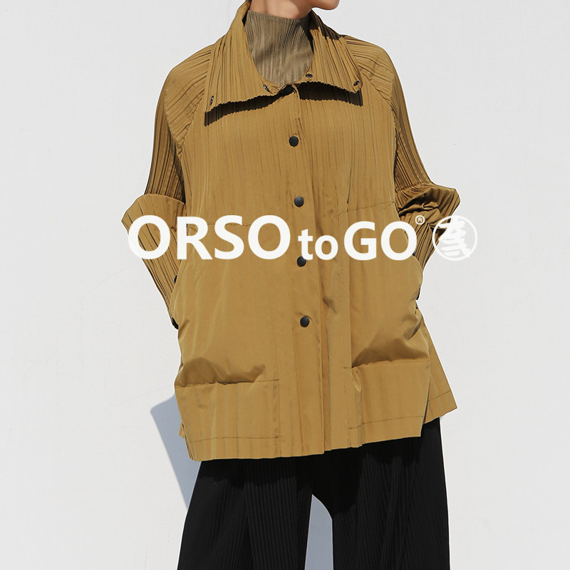 百搭减龄高端显瘦 上衣春秋款 设计师品牌女装 ORSOTOGO褶皱风衣大码