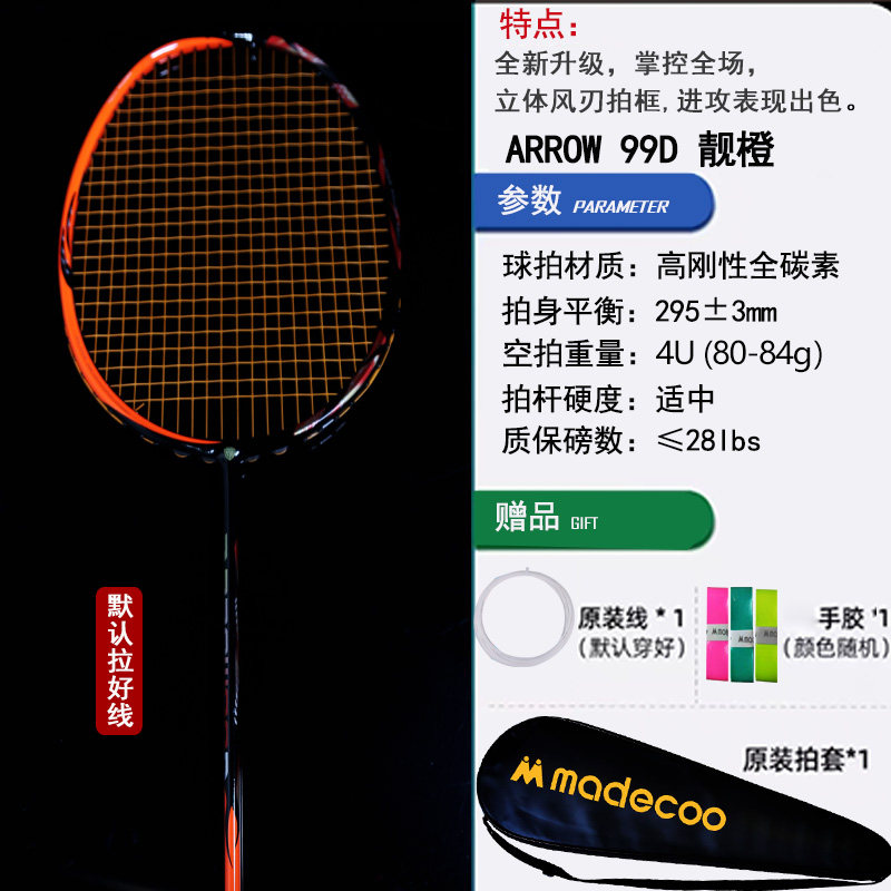 全新升级AR88 全碳素单拍攻防兼备4U AR99高弹超轻羽毛球拍正品