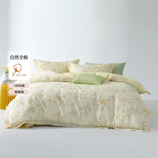 水星家纺全棉四件套100%纯棉印花床单被套床笠被子罩学生宿舍床品