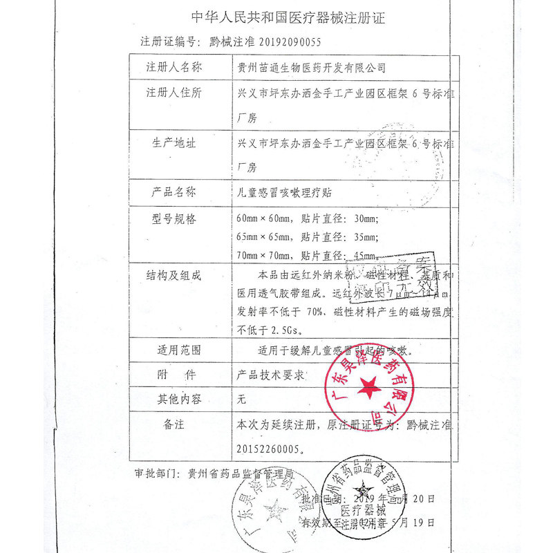 苗通好将来贴贴佳儿童感冒咳嗽理疗贴3加强代谢促进炎症消散止咳