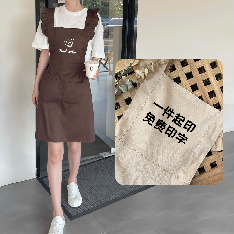 餐饮超市新款 工作服围裙定制印logo印字帆布背带围裙防水防污耐用