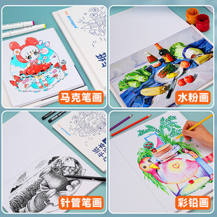 元 浩荷兰白卡纸本A4美术专用马克笔彩铅绘画本16K白色卡纸本子8K硬240g手绘成年A3漫画设计针管笔空白画画本