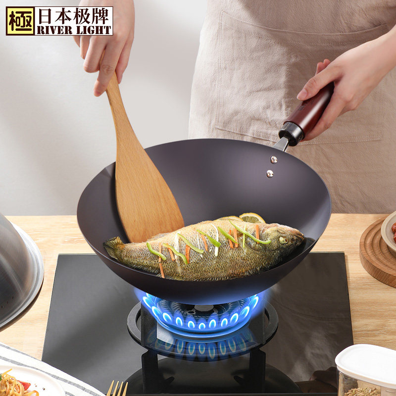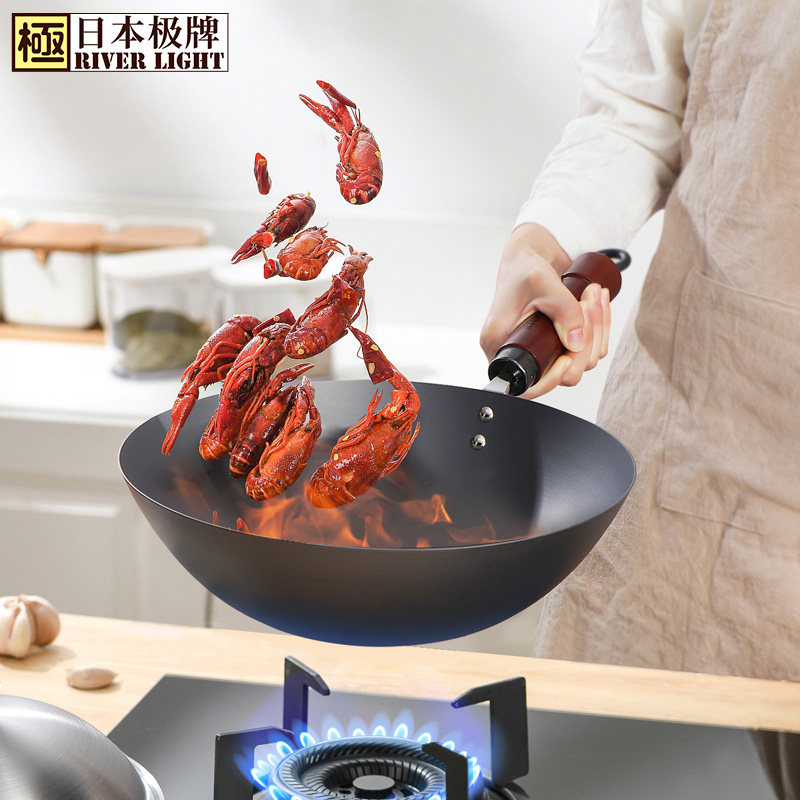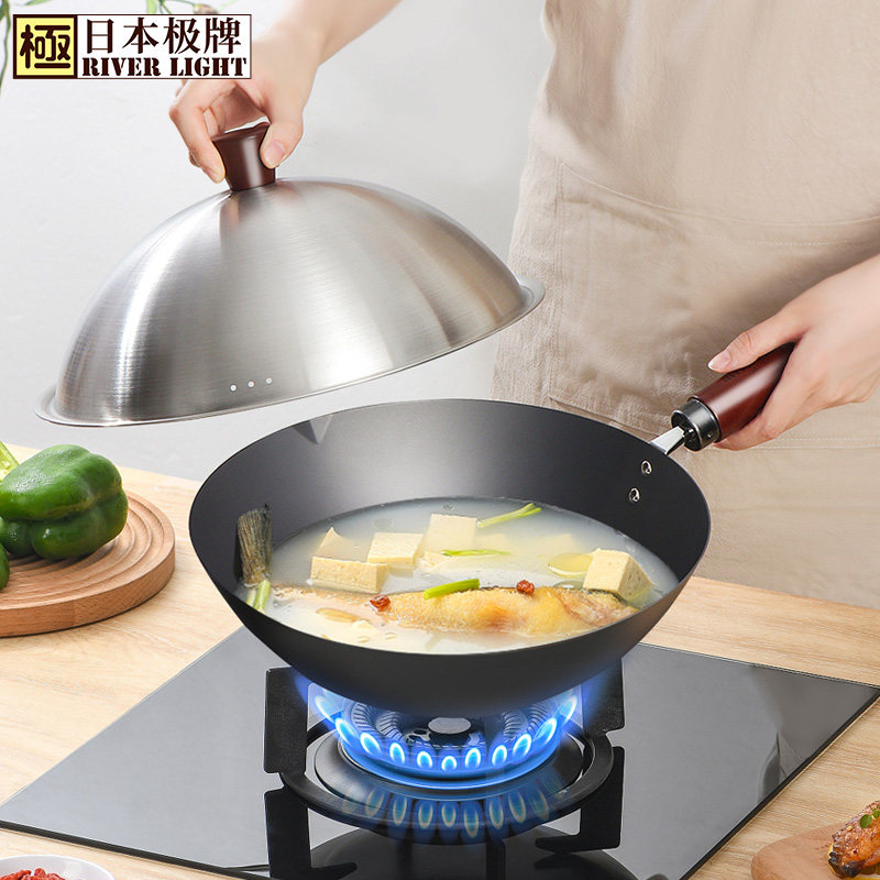 祖30 家用炒菜铁锅元 日本riverlight极牌进口炒锅老式 32cm 补