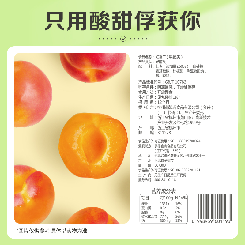 满减百草味红杏干100g杏干杏脯蜜饯果脯零食水果干