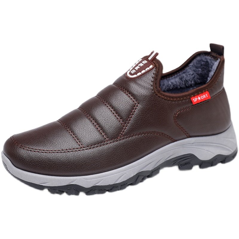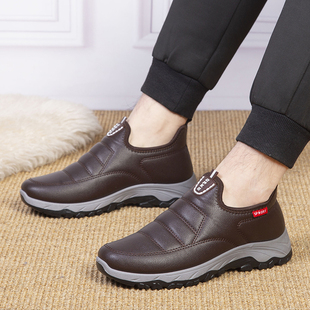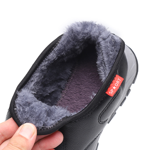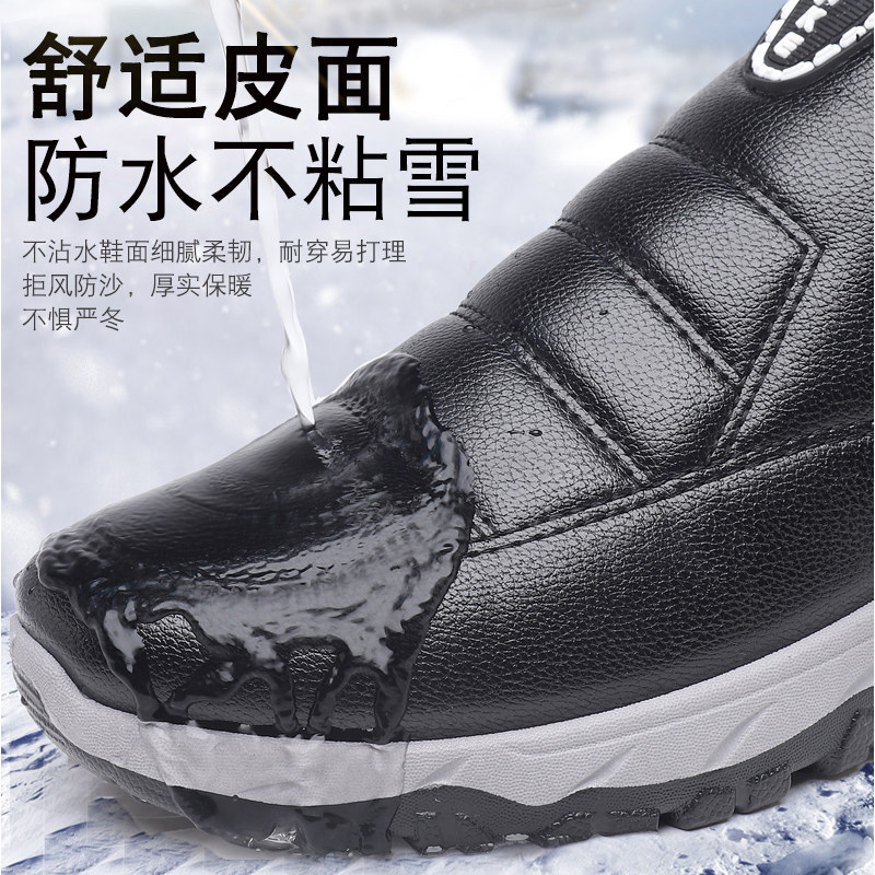 PU皮面防水加绒中老年棉靴男平底防滑保暖爸爸鞋 老北京棉鞋 男冬季
