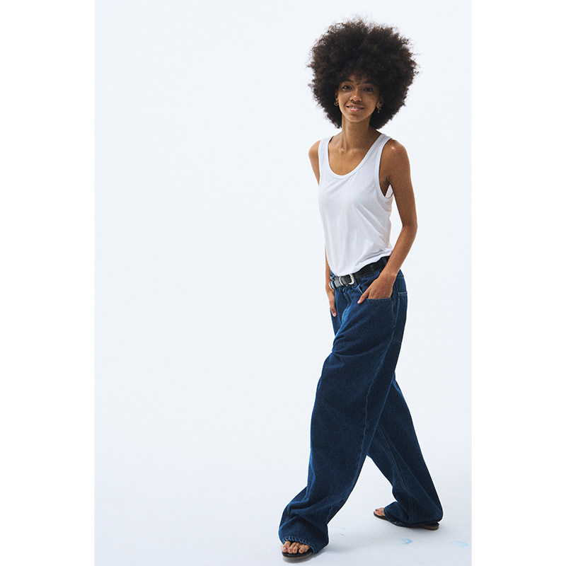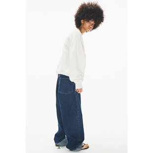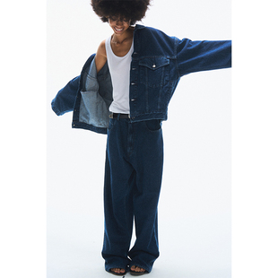百搭休闲 男女同款 seeseao 宽松阔腿慵懒感蓝色水洗低腰牛仔裤