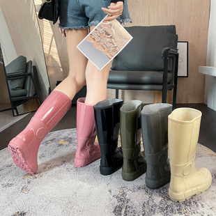 外穿防水户外雨林徒步水靴 女雨靴加绒加厚底成人时尚 高筒雨鞋 水鞋