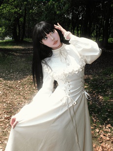 原创设计法式 瓷 复古秋冬气质收腰蕾丝连衣长裙 studio muggle