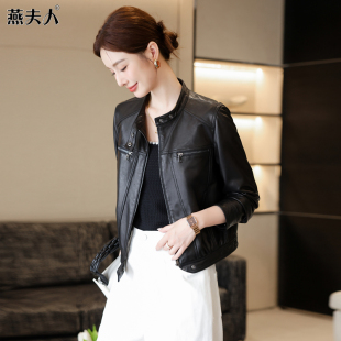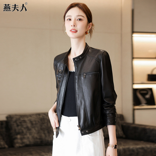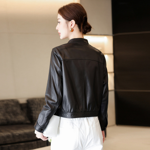 个性 立领小皮衣真皮女短款 修身 新款 海宁头层绵羊皮夹克外套 秋冬季