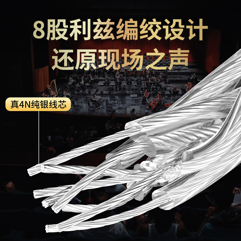 HIFI纯银MMCX耳机升级线typec 4.4平衡音频线 3.5mm0.78耳机线2.5