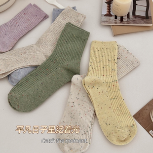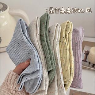 竖条点子纱袜子女中筒袜ins潮纯棉春秋日系个性 学院风长袜 网红款