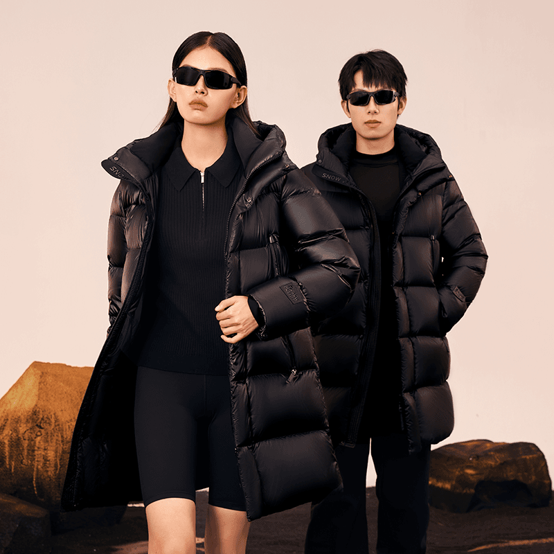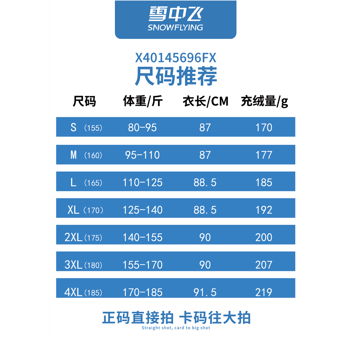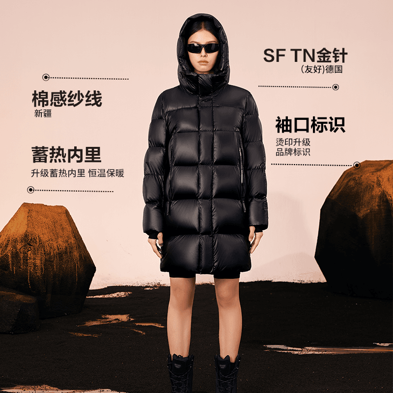 连帽羽绒服 男女同款 雪中飞品牌新款 黑曜石高奢6格亮面鹅绒中长款