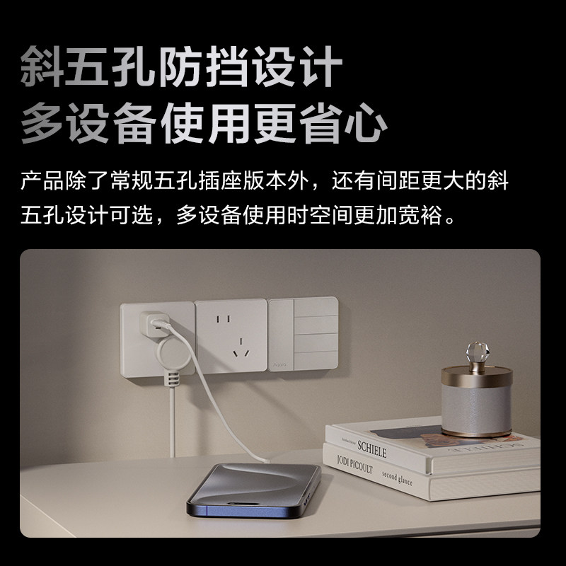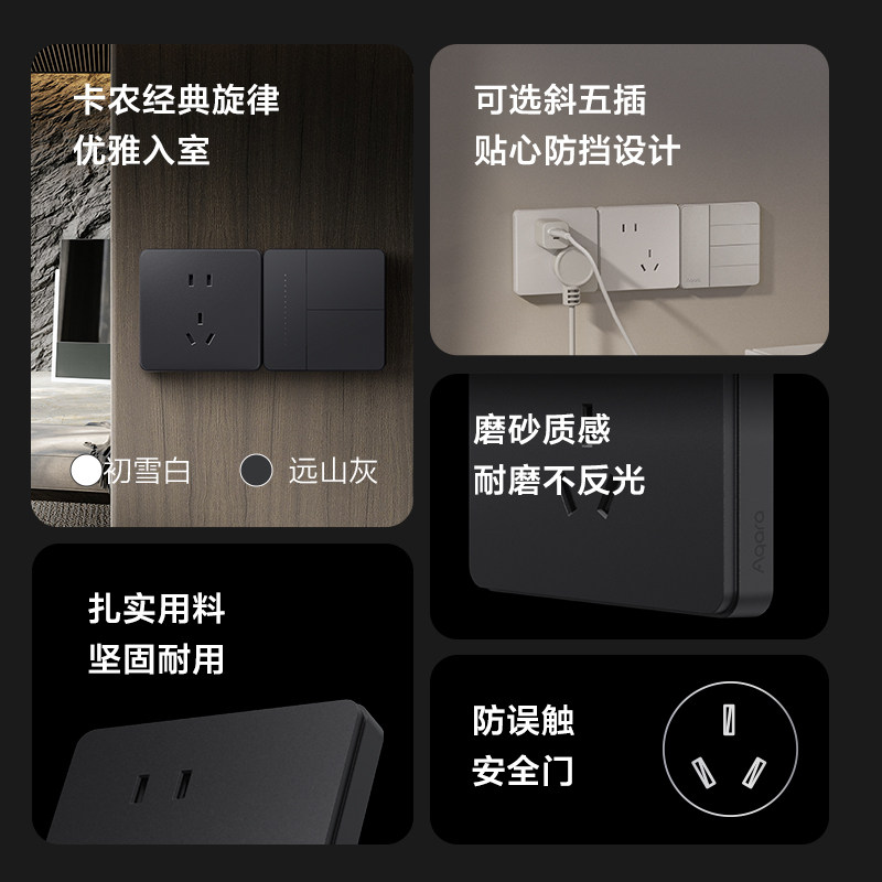 Aqara官方旗舰店墙壁插座卡农Z1五孔86型磨砂非智能插座面板