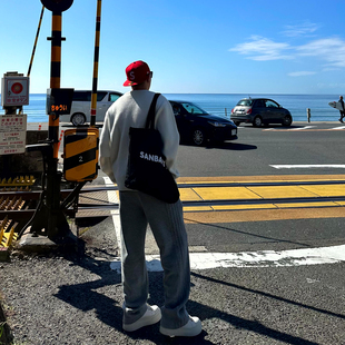 宽松黑色休闲裤 加绒卫裤 子女秋冬运动裤 灰色弯刀裤 长裤 oneup美式