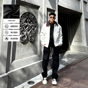 胖mm梨型身材慵懒加厚运动卫裤 女冬季 白色高腰显瘦加绒阔腿裤 大码