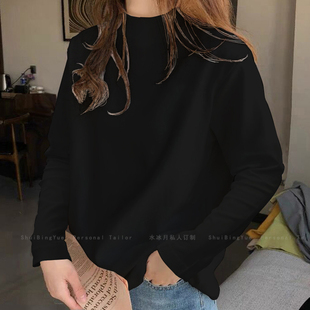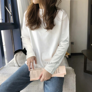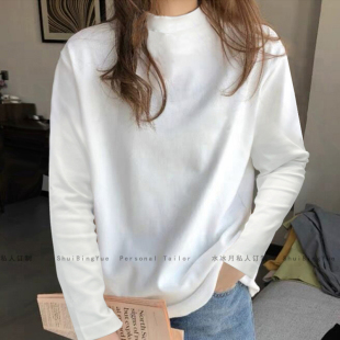 加厚棉内搭上衣大码 宽松T恤打底衫 小半高领白色长袖 欧洲站女装