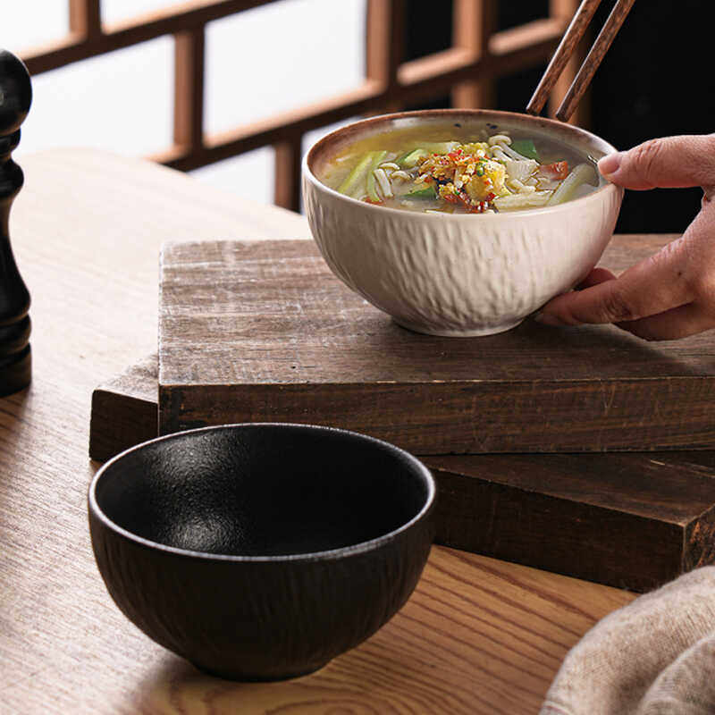 黑色高级感高档INS风陶瓷餐具泡面碗喝水碗简纯色复古猫碗西餐碗