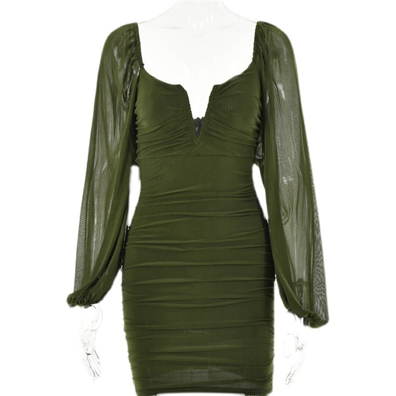 打底包臀连衣裙长裙 收腰显瘦长袖 YoungGirlDay 卡戴珊性感V领修身