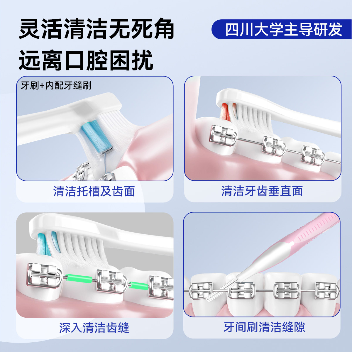 皓齿舒正畸牙刷矫正牙齿软毛小头U型成人儿童戴牙套专用牙缝刷