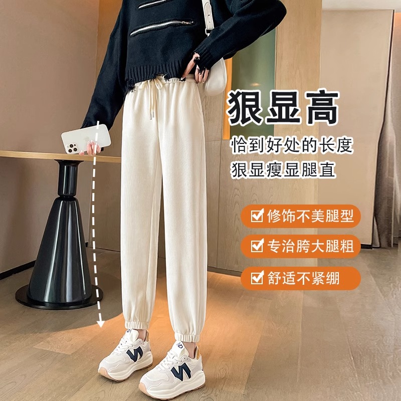 女秋冬加绒宽松显瘦小个子束脚哈伦裤 300斤大码 胖mm雪尼尔运动裤