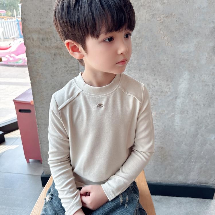 T恤 中小童半高领磨毛内搭儿童上衣男童长袖 宝宝打底衫 羊绒棉秋款