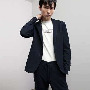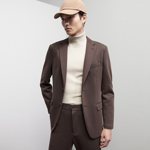西装 花纹修身 外套男 海澜之家绒感弹力休闲西服男25秋冬新时尚 HLA