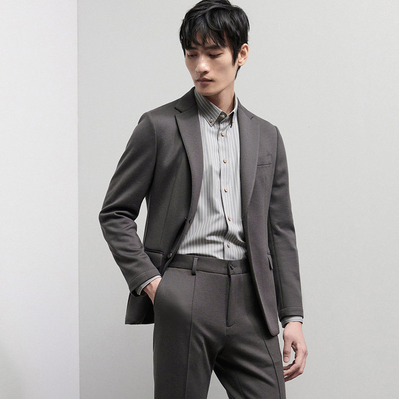 ELI 真丝羊毛混纺平驳领釉面牛角扣休闲西服外套男春秋 杜松