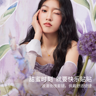 周六福黄金项链吊坠足金计价链坠玫瑰花套链梦幻森林系列新年礼物