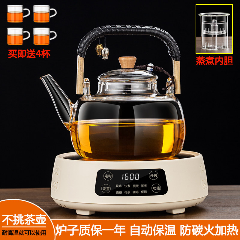 2025新款 不挑壶电陶炉蒸煮一体茶壶烧水壶耐高温玻璃煮茶器套装