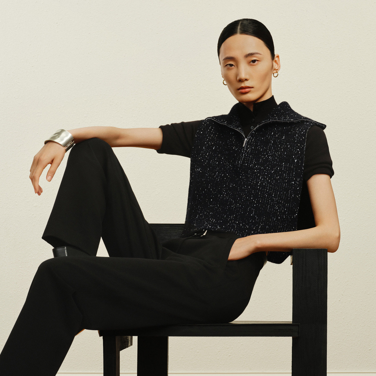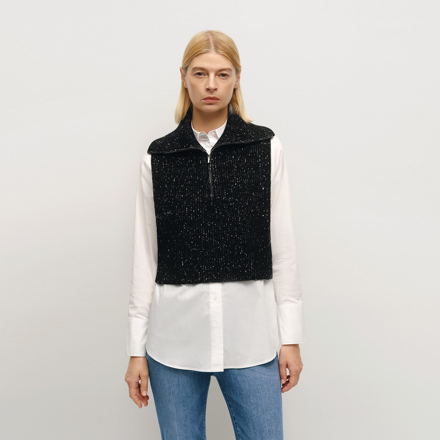 短款 时髦大翻领半开襟无袖 针织背心 女装 OVV秋冬热卖