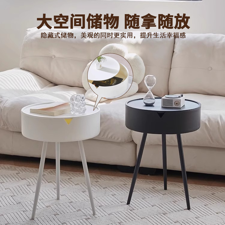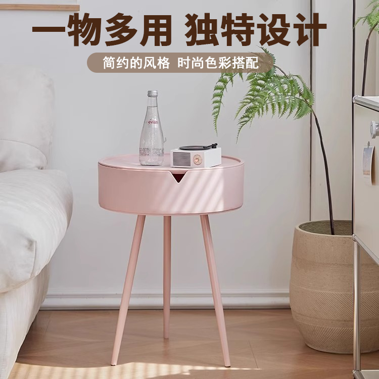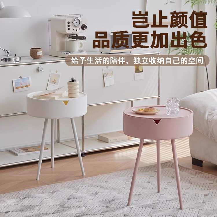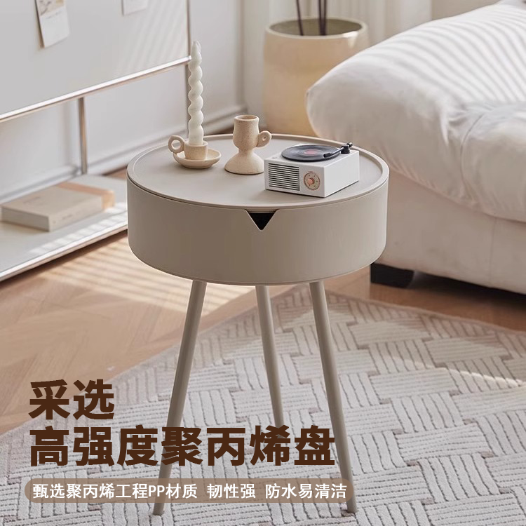 奶油风床头柜现代简约新款 创意圆形替代卧室客厅儿童小床头收纳柜