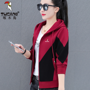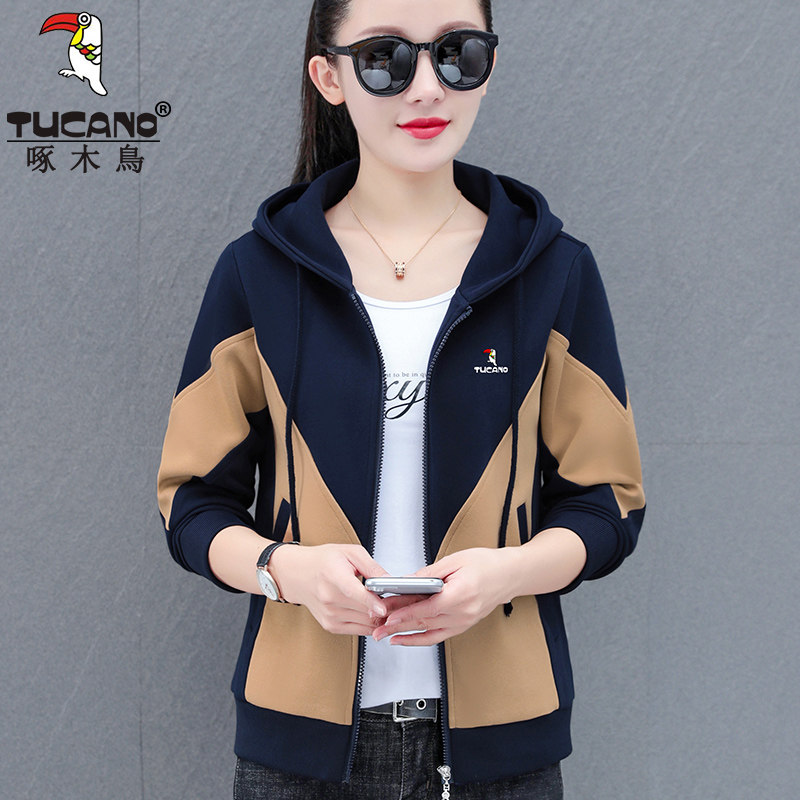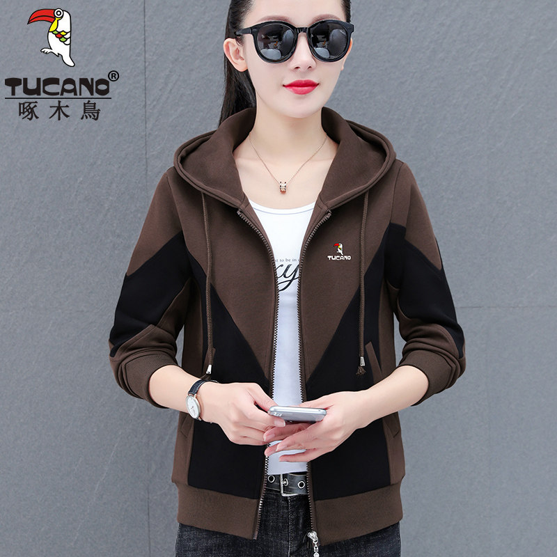 中年妈妈休闲大码 外套女春秋2026新款 上衣 连帽卫衣开衫 啄木鸟正品