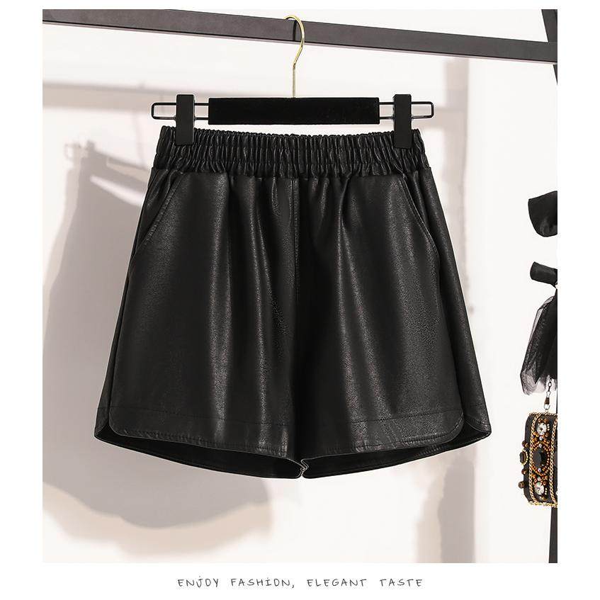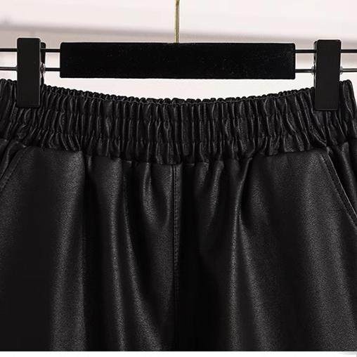 pu皮裤 2025秋冬新款 女胖mm外穿显瘦阔腿a字裤 百搭皮短裤 女 加大码