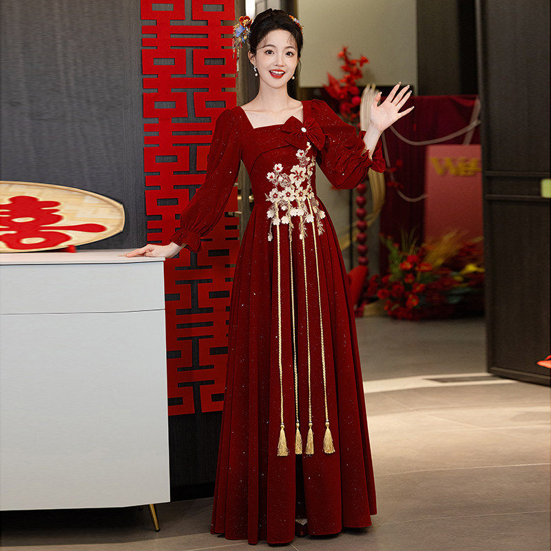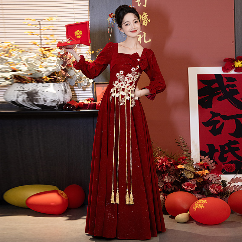 新娘丝绒结婚大码 订婚裙回门礼服女高端轻奢小众冬 敬酒服2025新款