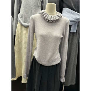 正版 韩系甜美减龄荷叶双层领针织打底衫 含羊绒 新款 2024冬季 高端